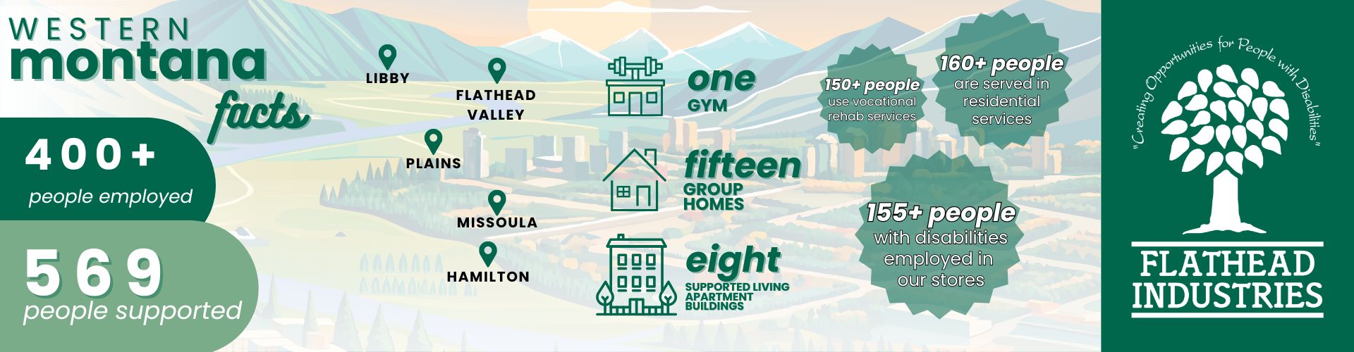 In 1973 a synergy of concerned parents and families took action to raise money and awareness. Flathead Industries was established and provided supports to eight individuals with disabilities.